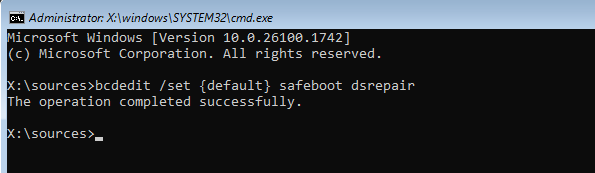 DSRM modda açmak için aşağıdaki komutları çalıştırıyoruz.