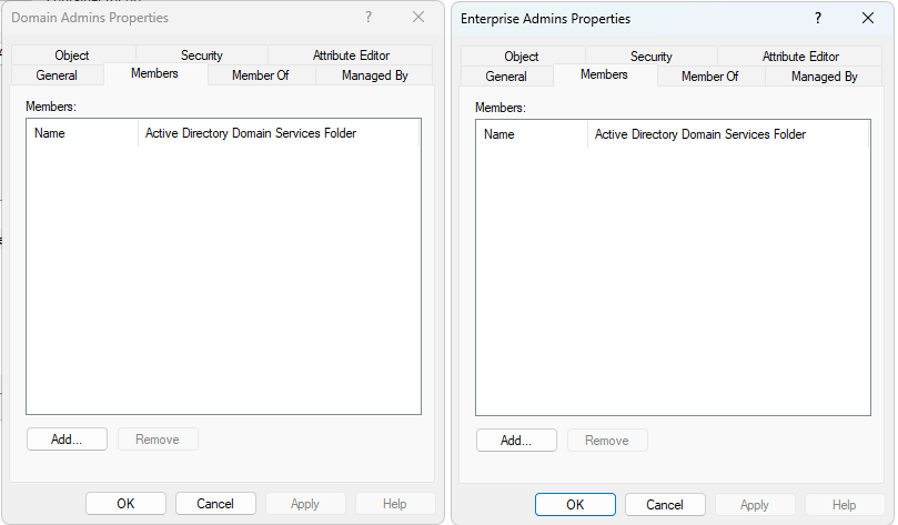 - -Enterprise Admins grubunun tüm üyeleri kaldırılmıştır.