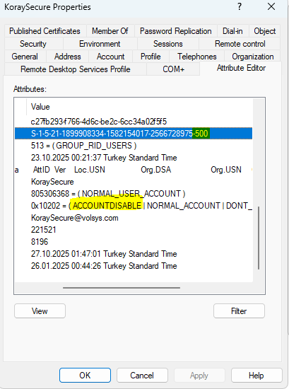 Önemli Nokta: Eğerki RID500 Samaccountname bilinmiyorsa ,şöyle bir kod kullanılabilmektedir. Ya hesabı kodda rename edebilirsiniz ya da txt olarak C de herhangi bir folder’a txt olarak accountname çıkarılabilmektedir. Eğerki 2.durum tercih edilirse bir defa normal modda açıp giriş yapmadan tekrardan dsrm moda düşüp c diskinden samaccountname bulunmaktadır.